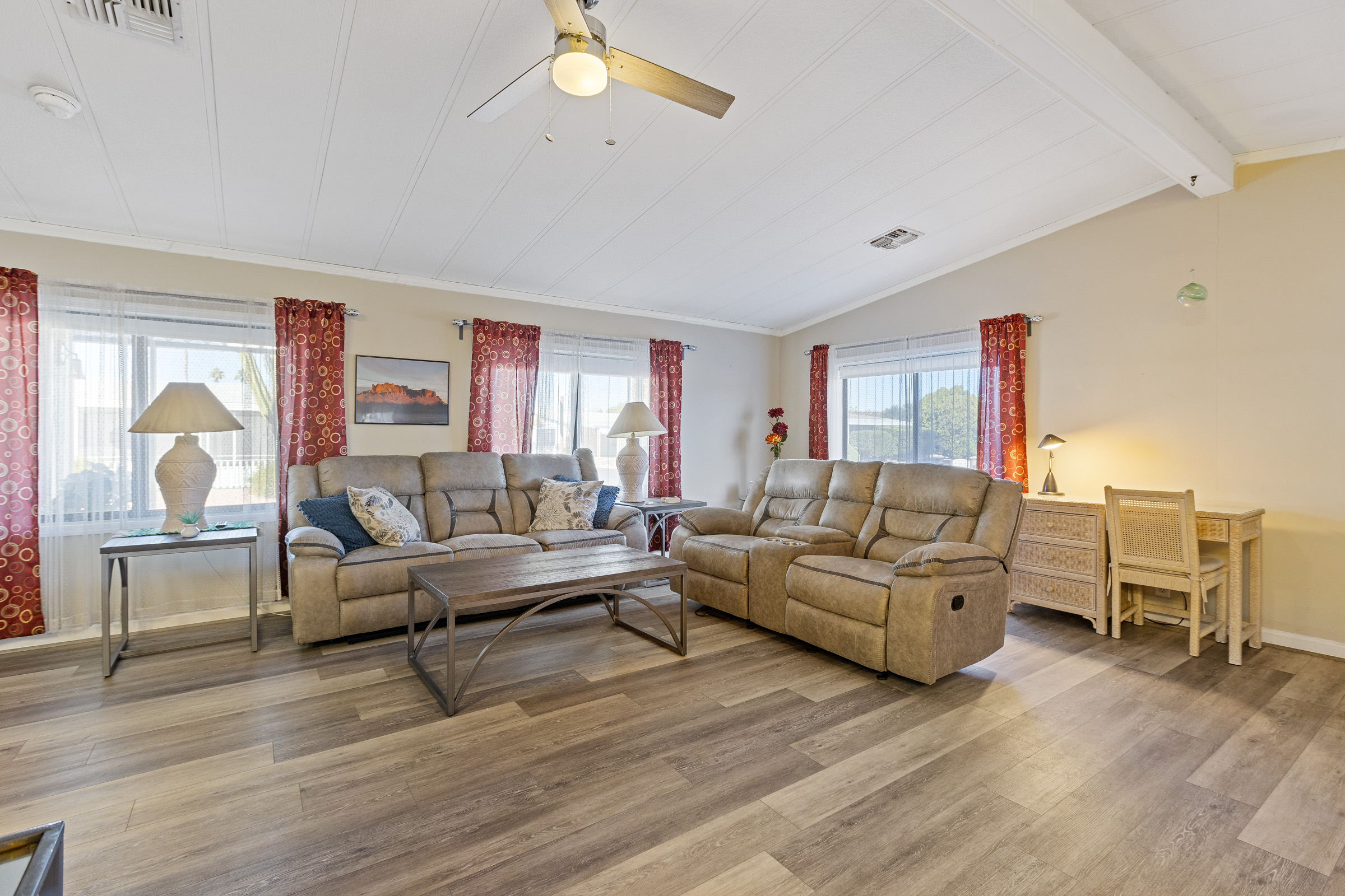 - Upgraded drapery package with mini blinds