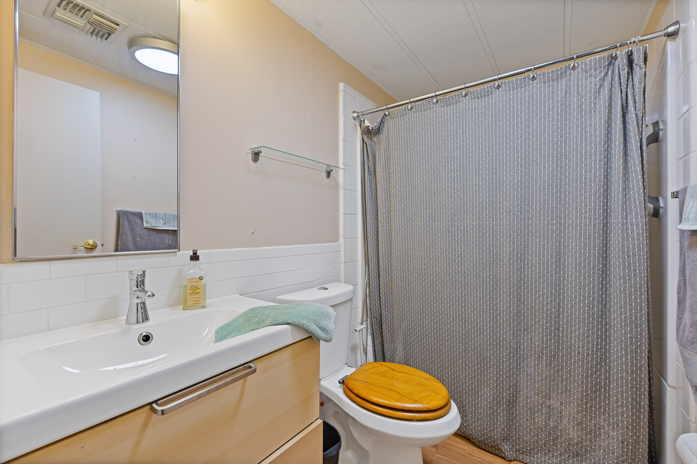 - High-pressure laminate countertops and backsplash