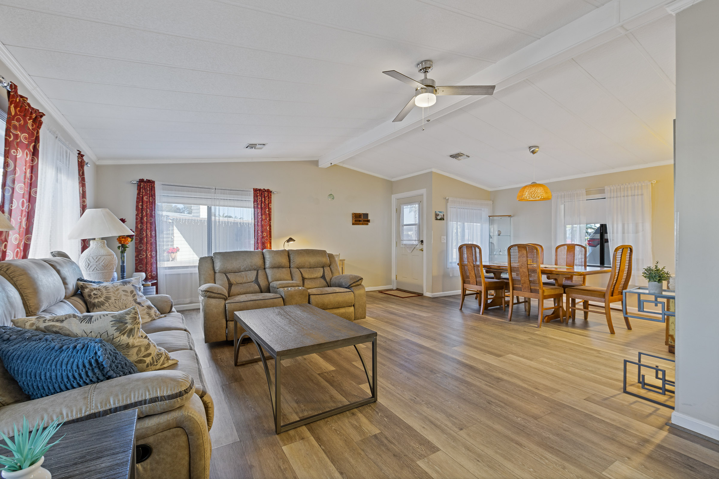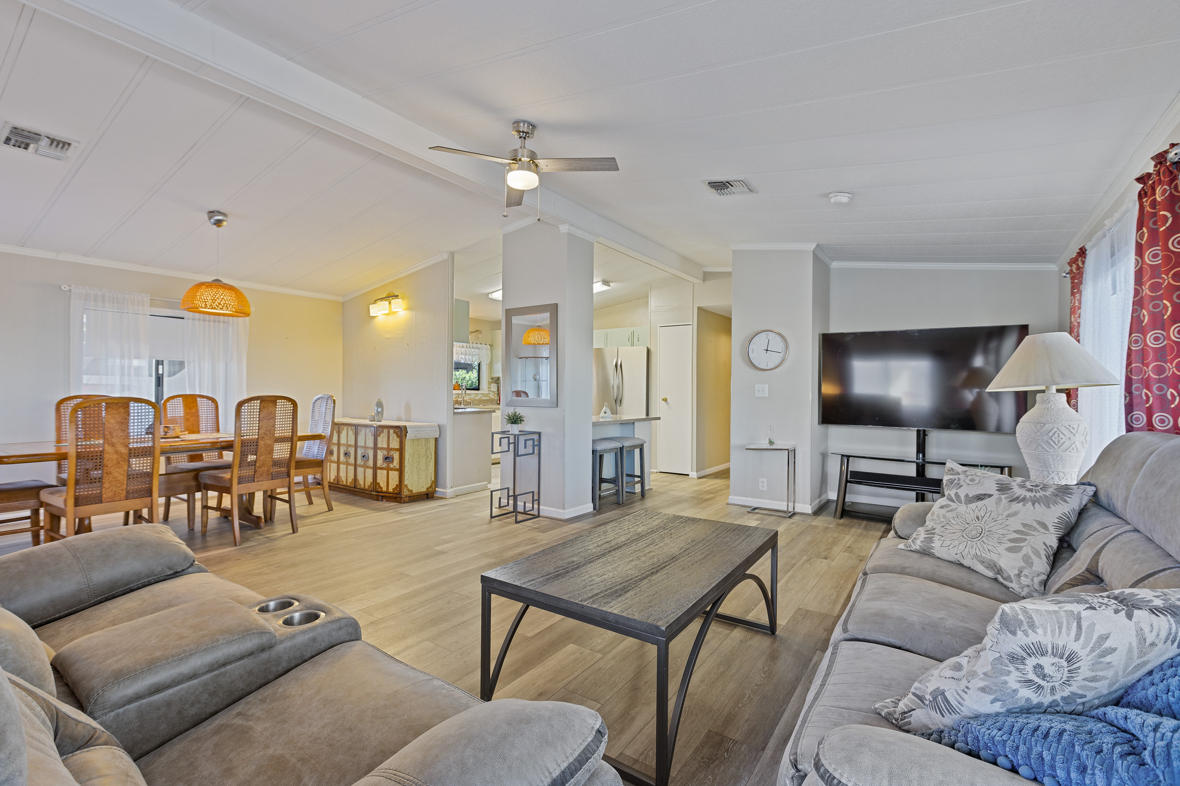 Fully furnished home located at the very end of a quiet street, offering excellent privacy and an open-concept layout. Features new flooring throughout, an updated kitchen with modern appliances, and spacious living and dining areas filled with natural light. Both bathrooms include walk-in showers, and the primary suite also offers a relaxing garden tub. Move-in ready with comfortable furnishings and a welcoming layout.