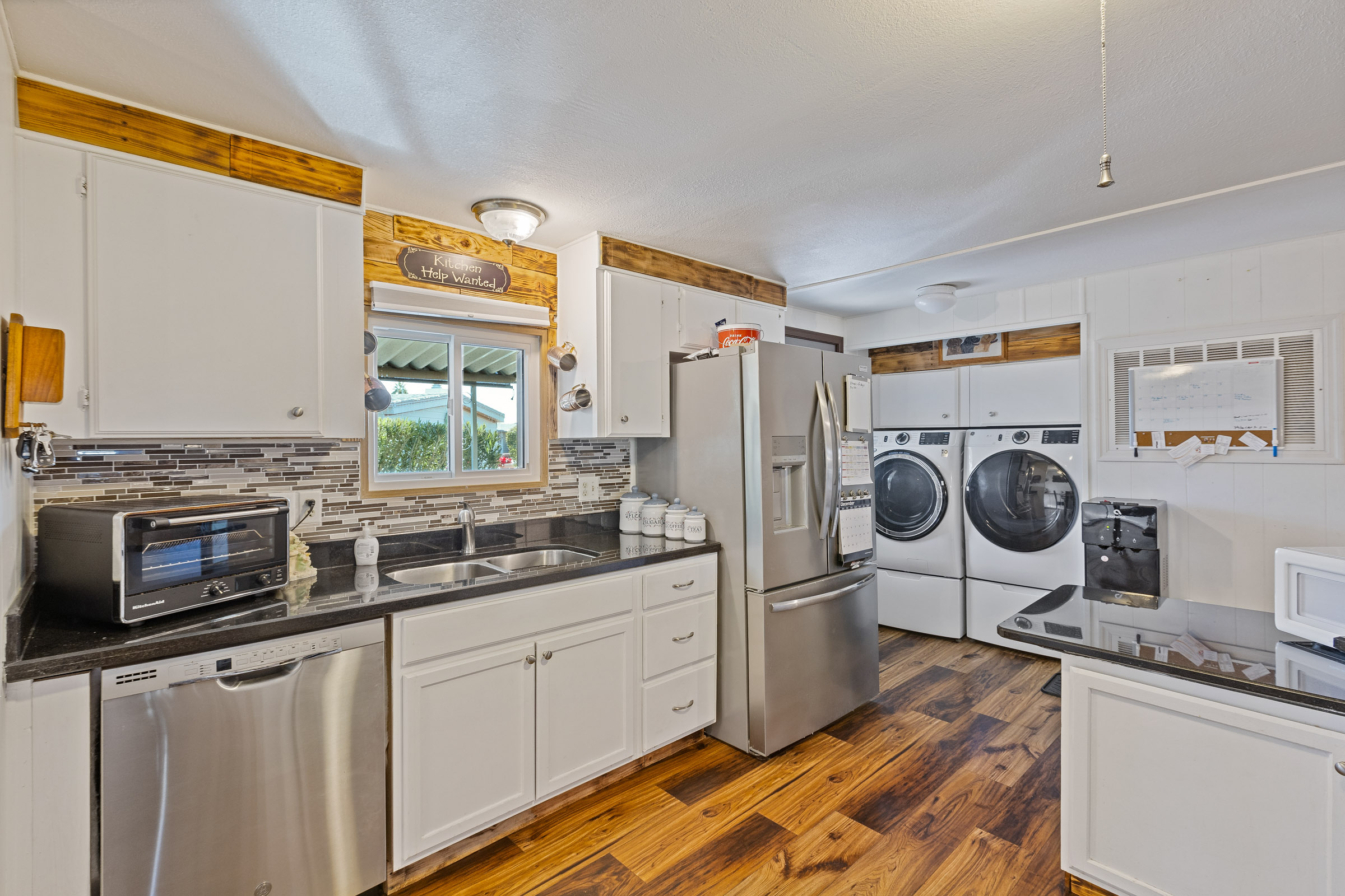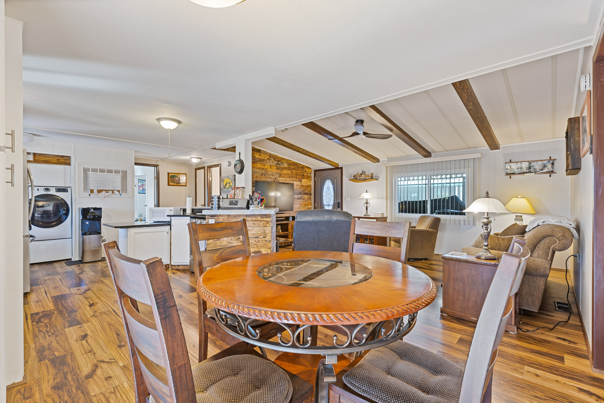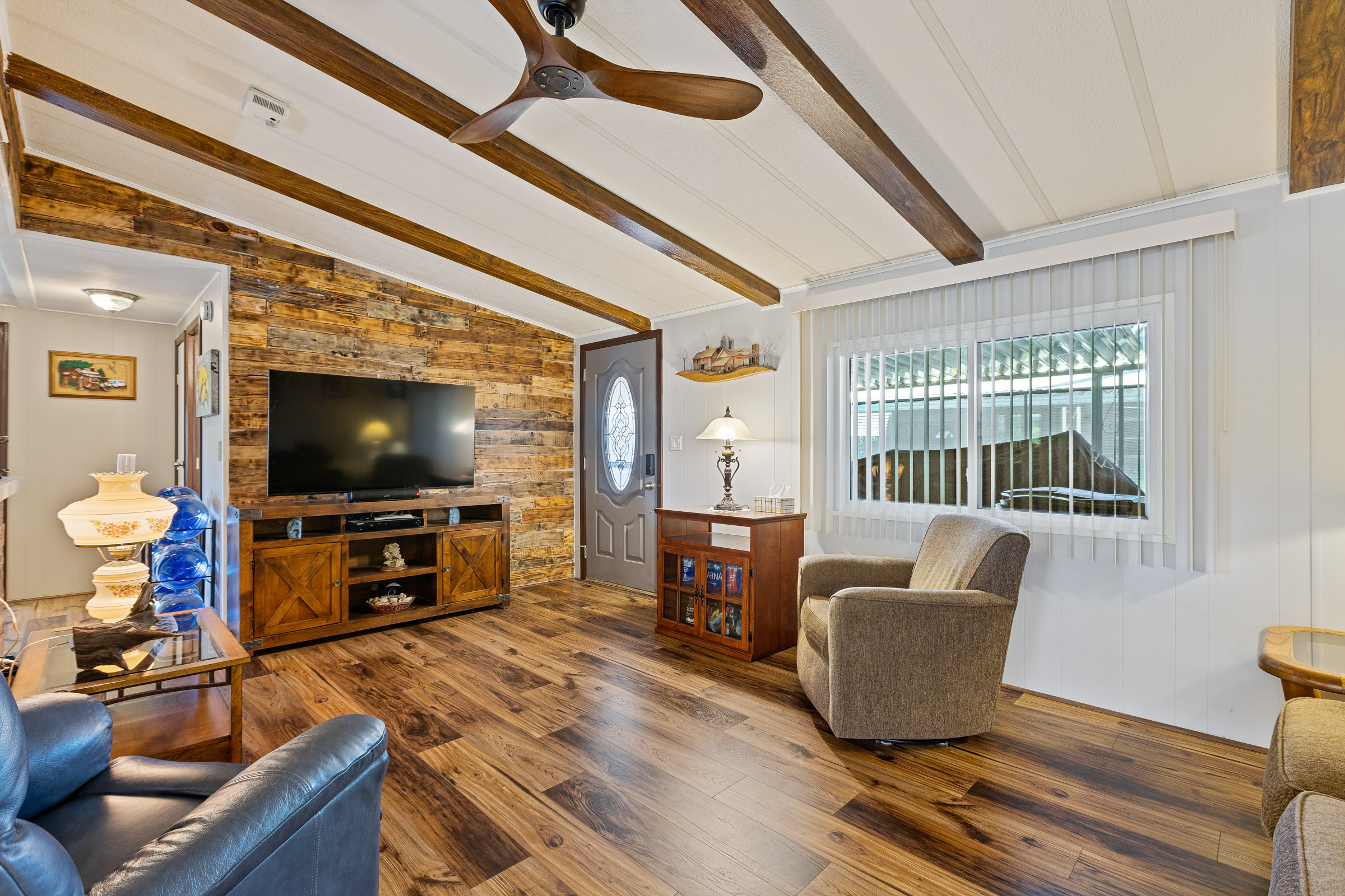 This premium corner very well maintained home boast many modern upgrades making this home move in ready! The open split floor plan offers privacy and comfort making it suitable for everyone. The living room has wood beams and a half vaulted ceiling adding character to the home. The primary suite comes with a sliding patio door, walk-in closet and remodeled ensuite bath shower. The other modern upgrades include all new Flooring, interior doors, stainless steel kitchen appliances, both bathroom showers, laundry appliances, 2 sliding patio doors and dual pane windows, Water heater, Roof, A/C with sealed duct work, Home leveled and support beams, Garage door and breaker fuse box; nothing was missed! Pack your bags and come claim your new home! All upgrades we done in 2021-2025!