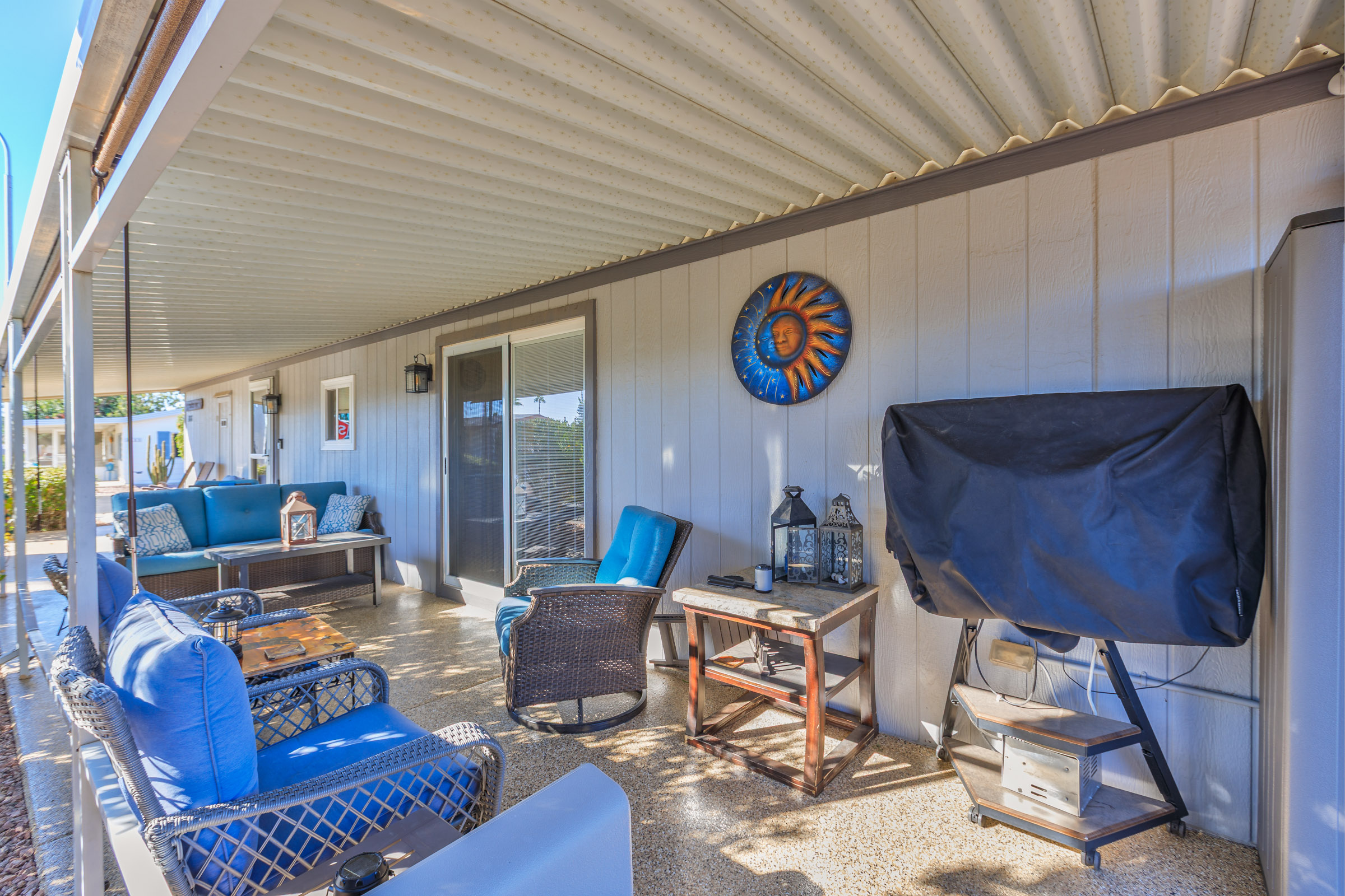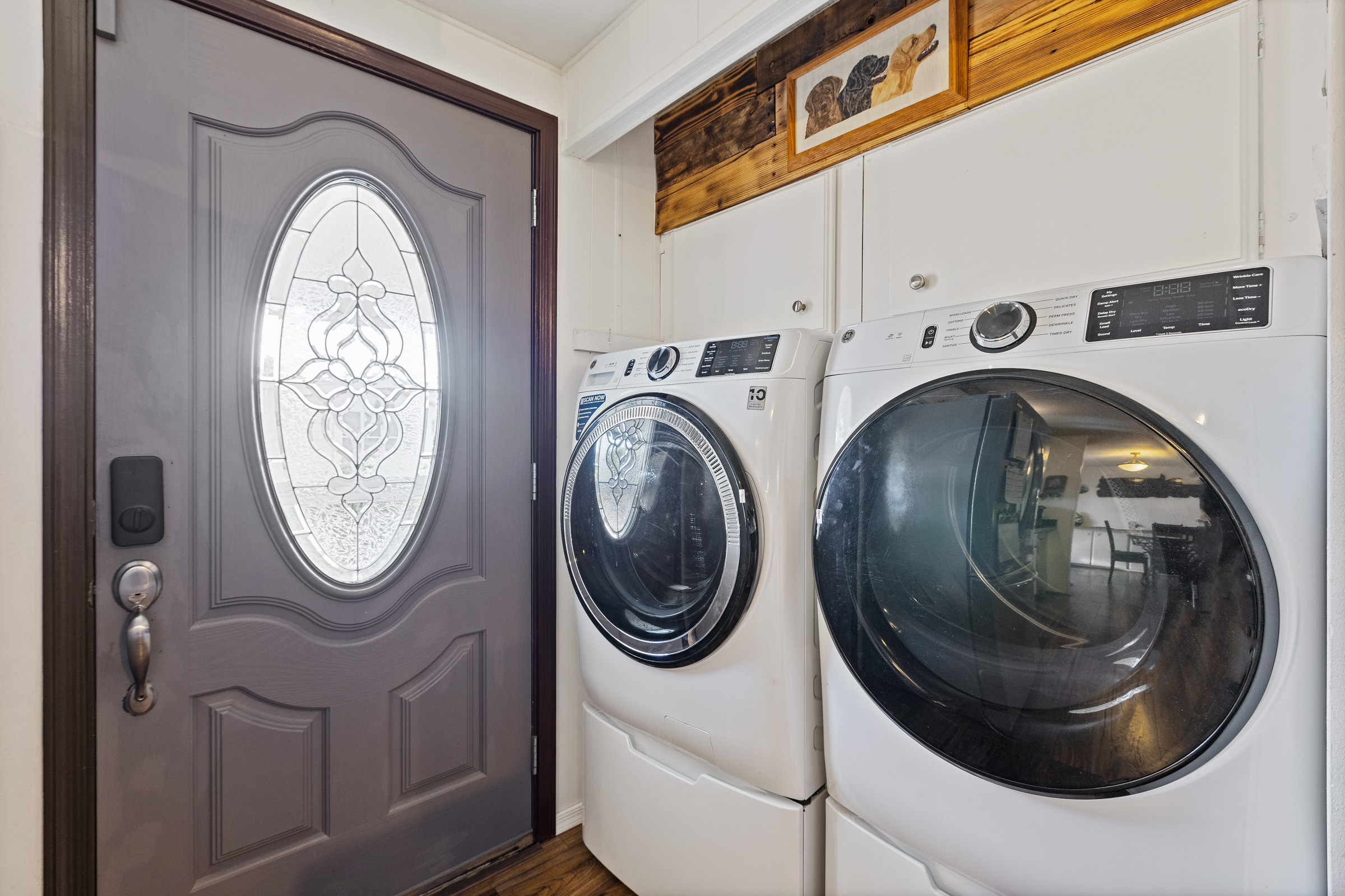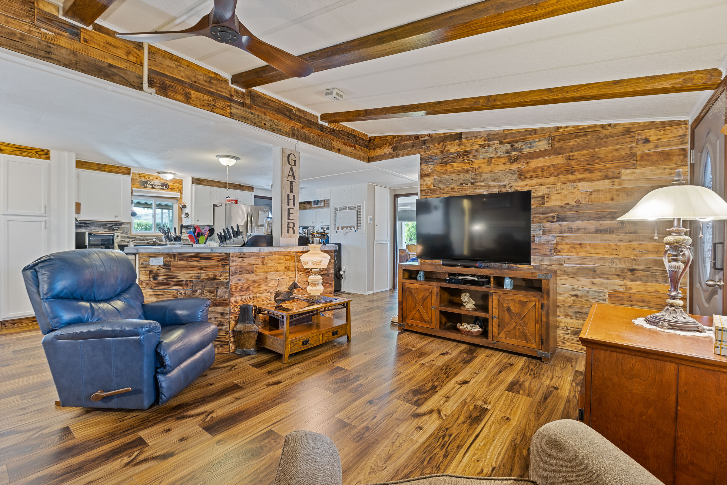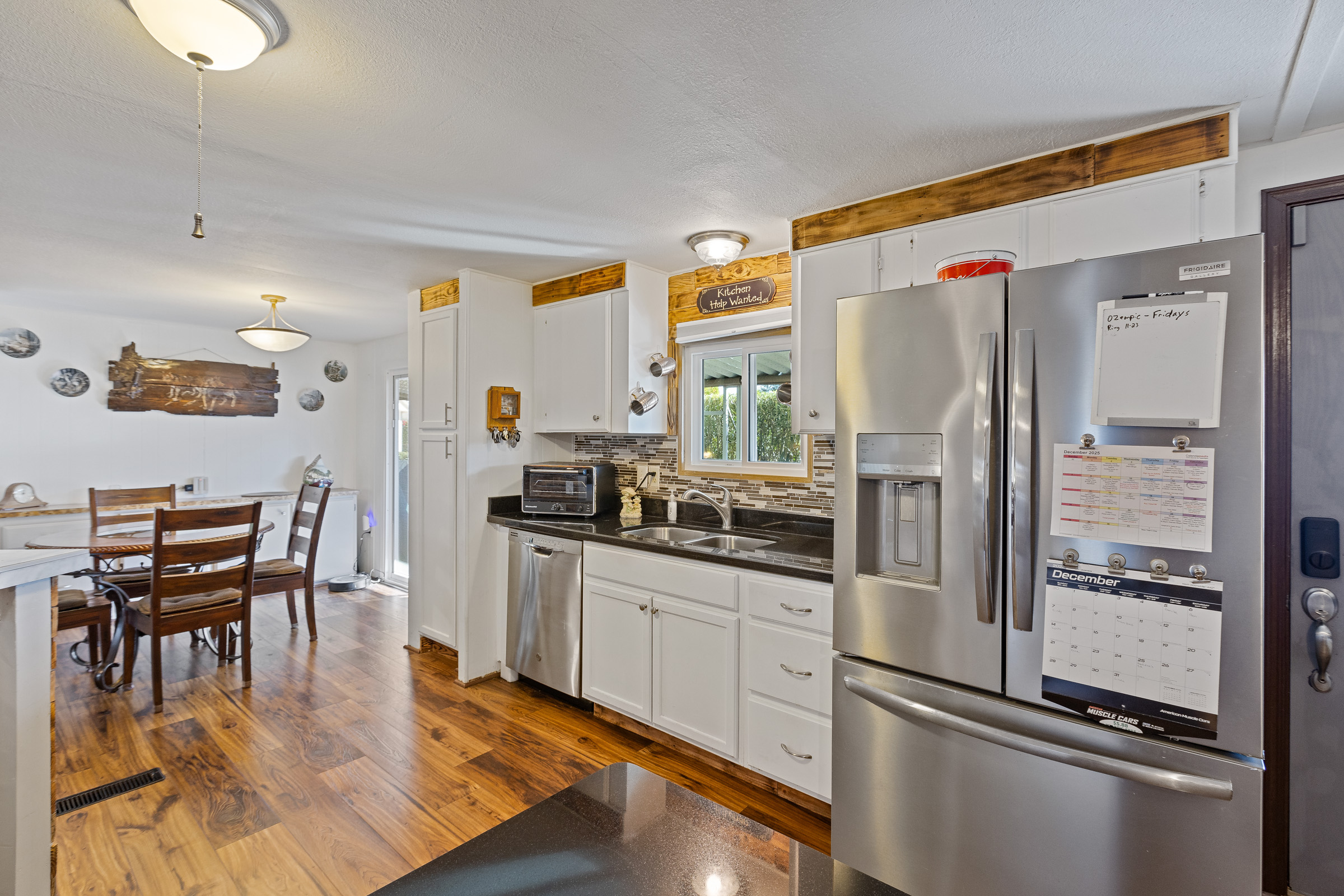 This premium corner very well maintained home boast many modern upgrades making this home move in ready! The open split floor plan offers privacy and comfort making it suitable for everyone. The living room has wood beams and a half vaulted ceiling adding character to the home. The primary suite comes with a sliding patio door, walk-in closet and remodeled ensuite bath shower. The other modern upgrades include all new Flooring, interior doors, stainless steel kitchen appliances, both bathroom showers, laundry appliances, 2 sliding patio doors and dual pane windows, Water heater, Roof, A/C with sealed duct work, Home leveled and support beams, Garage door and breaker fuse box; nothing was missed! Pack your bags and come claim your new home! All upgrades we done in 2021-2025!