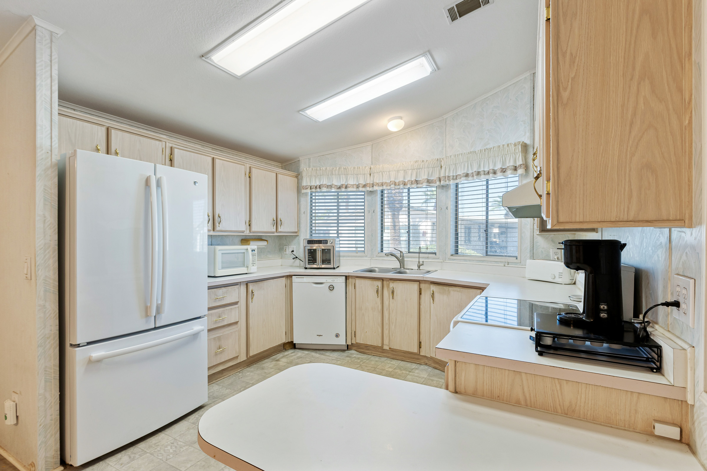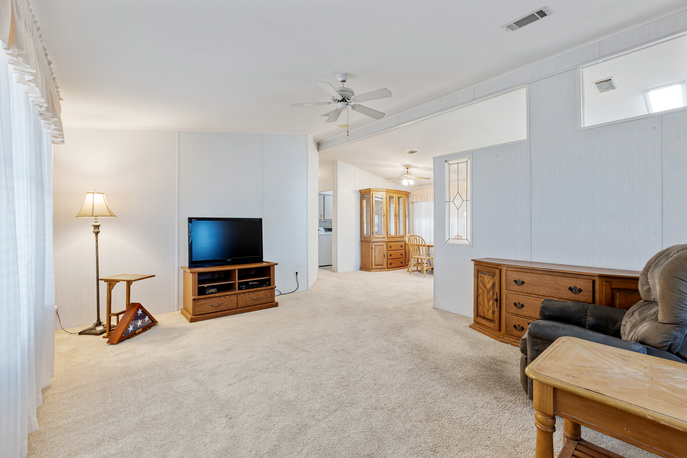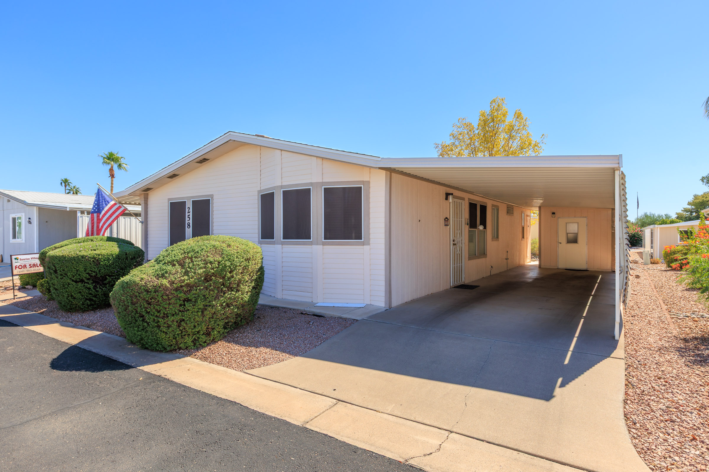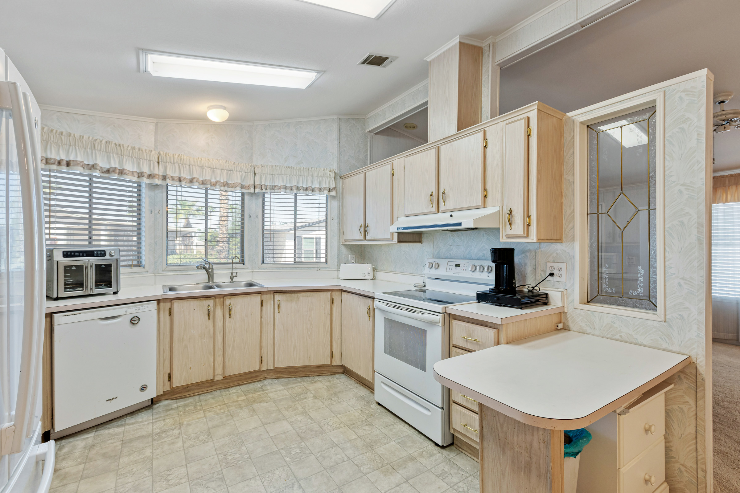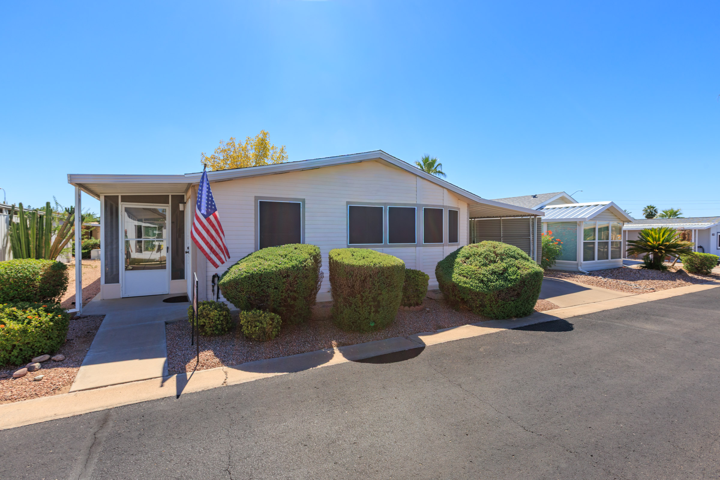 This 1,248 sq. ft. manufactured home, built by Cavco in 1993, blends comfort and convenience with 2 bedrooms and 2 bathrooms. The home features a large living room, a primary bedroom with an en suite bath and walk-in shower, and a well-designed kitchen with modern appliances. A dedicated laundry room adds practicality. Exterior highlights include an Arizona room, asphalt driveway, covered carport, and storage shed — offering both comfort and utility inside and out.