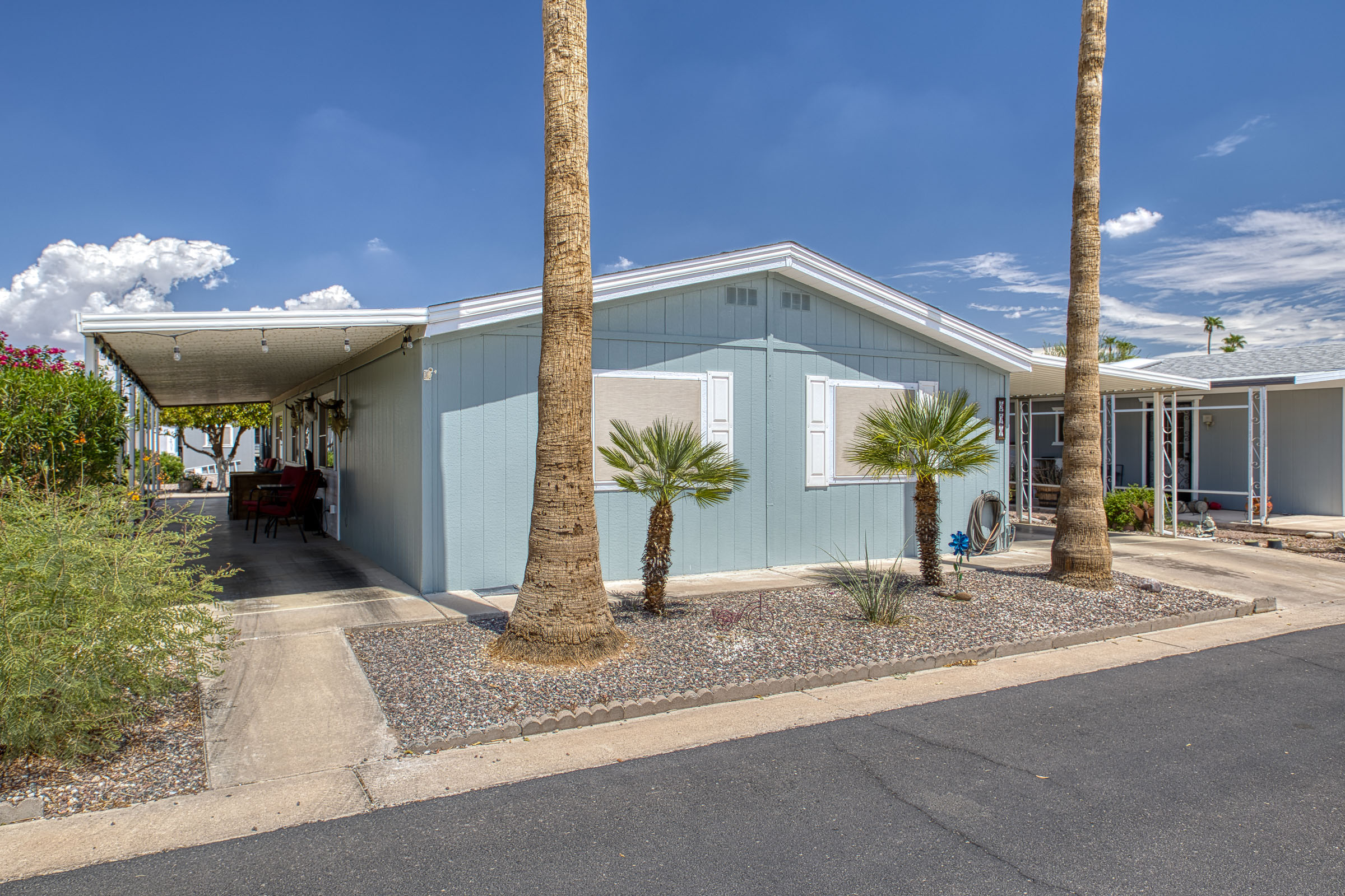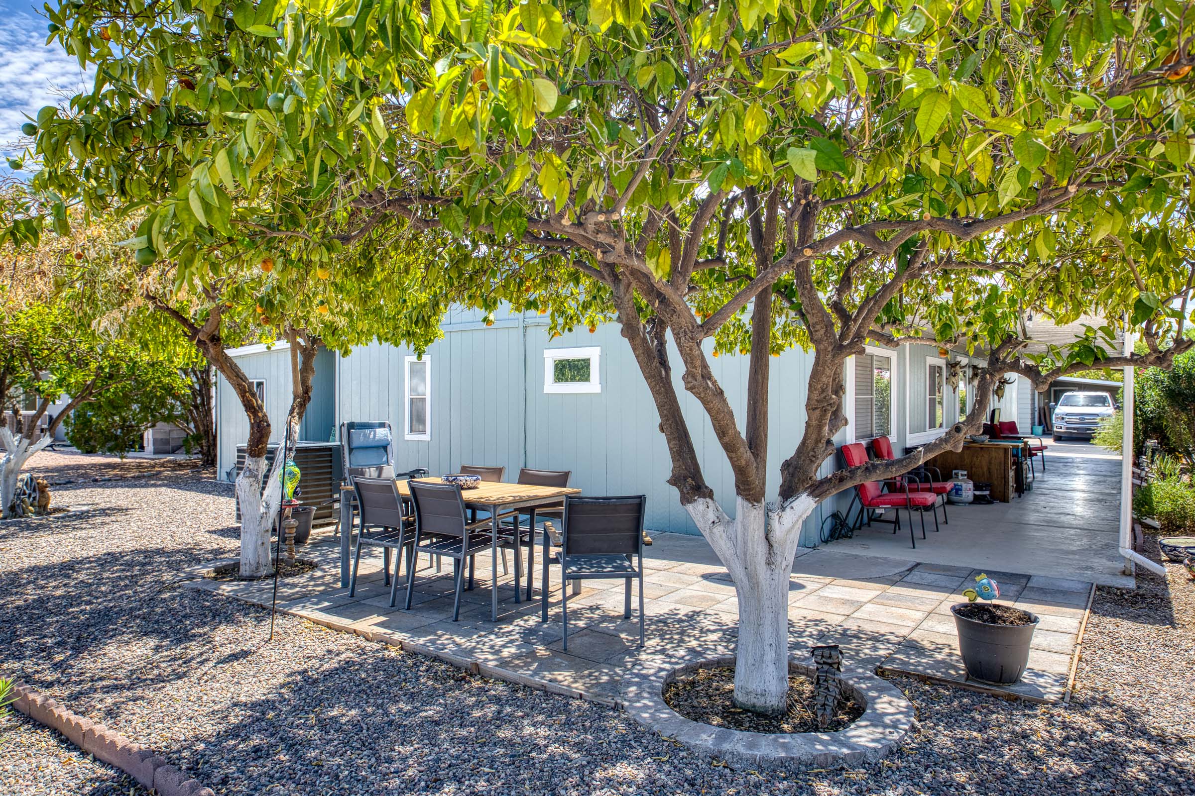 This well maintained, 3 bedroom, 2 bathroom home, boosts an open concept floor plan with a kitchen perfect for a culinary enthusiast and entertaining. The spacious primary bedroom features an en-suite bathroom that has a walk-in shower while the secondary bathroom has a tub/shower combo. All appliances are electric, a separate laundry room is conveniently located inside the home. This home comes with a shed for extra storage and/or to use as a workshop, a 2 vehicle covered carport and an inviting front porch where you can relax and enjoy the beautiful AZ sunrises or the back patio area covered with 3 citrus trees. Call today to schedule an appointment to view your Dream Home!
