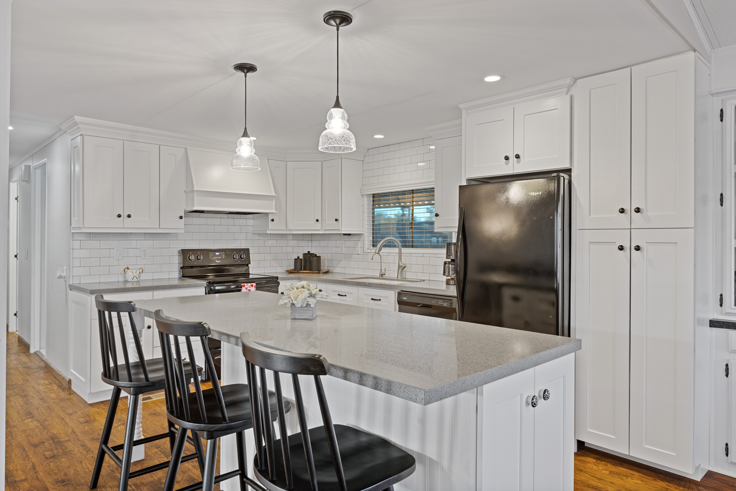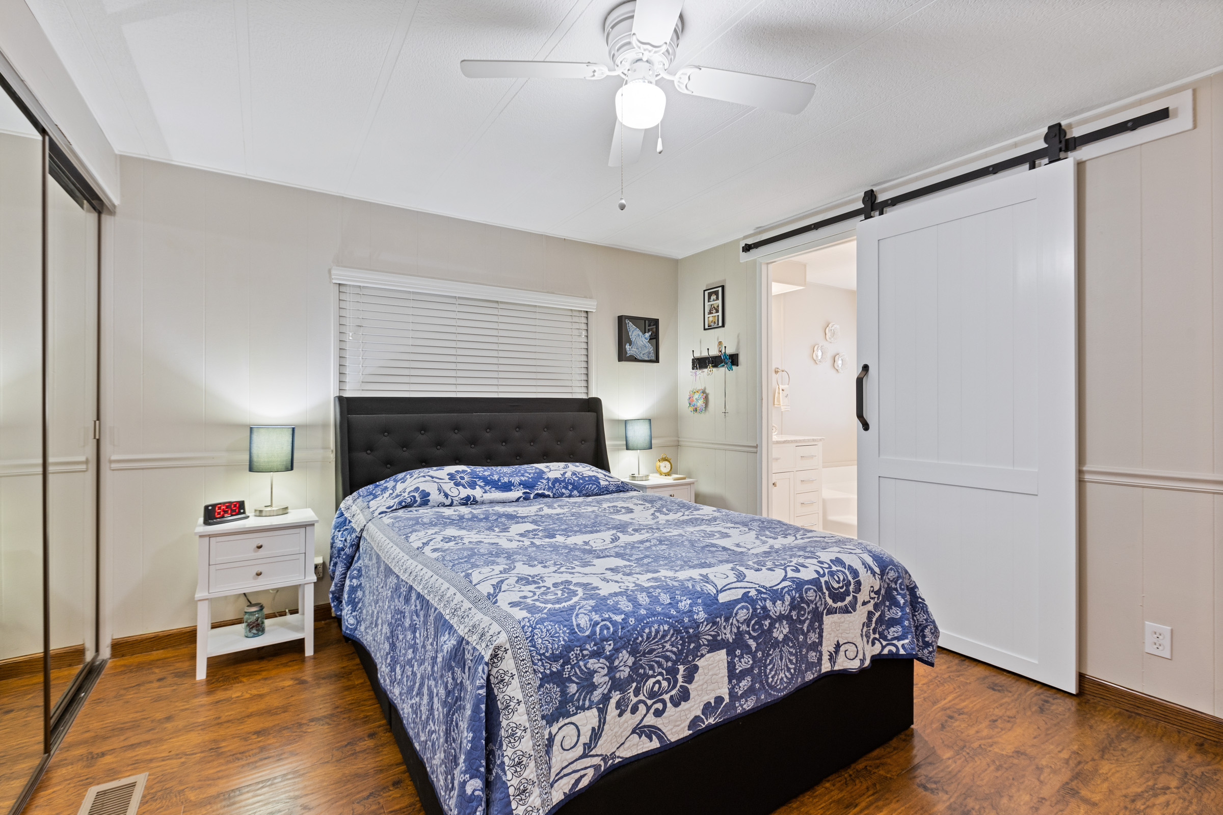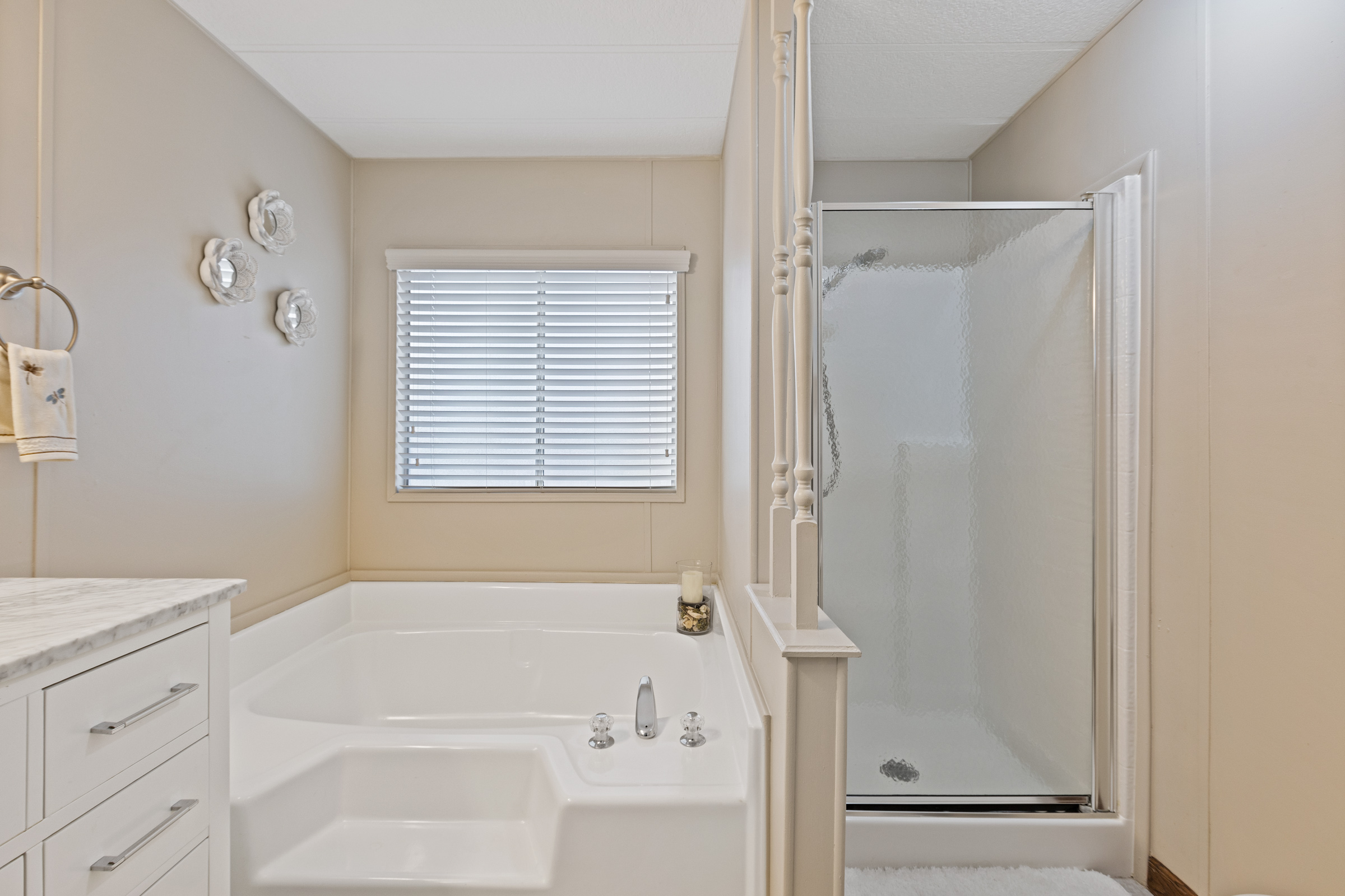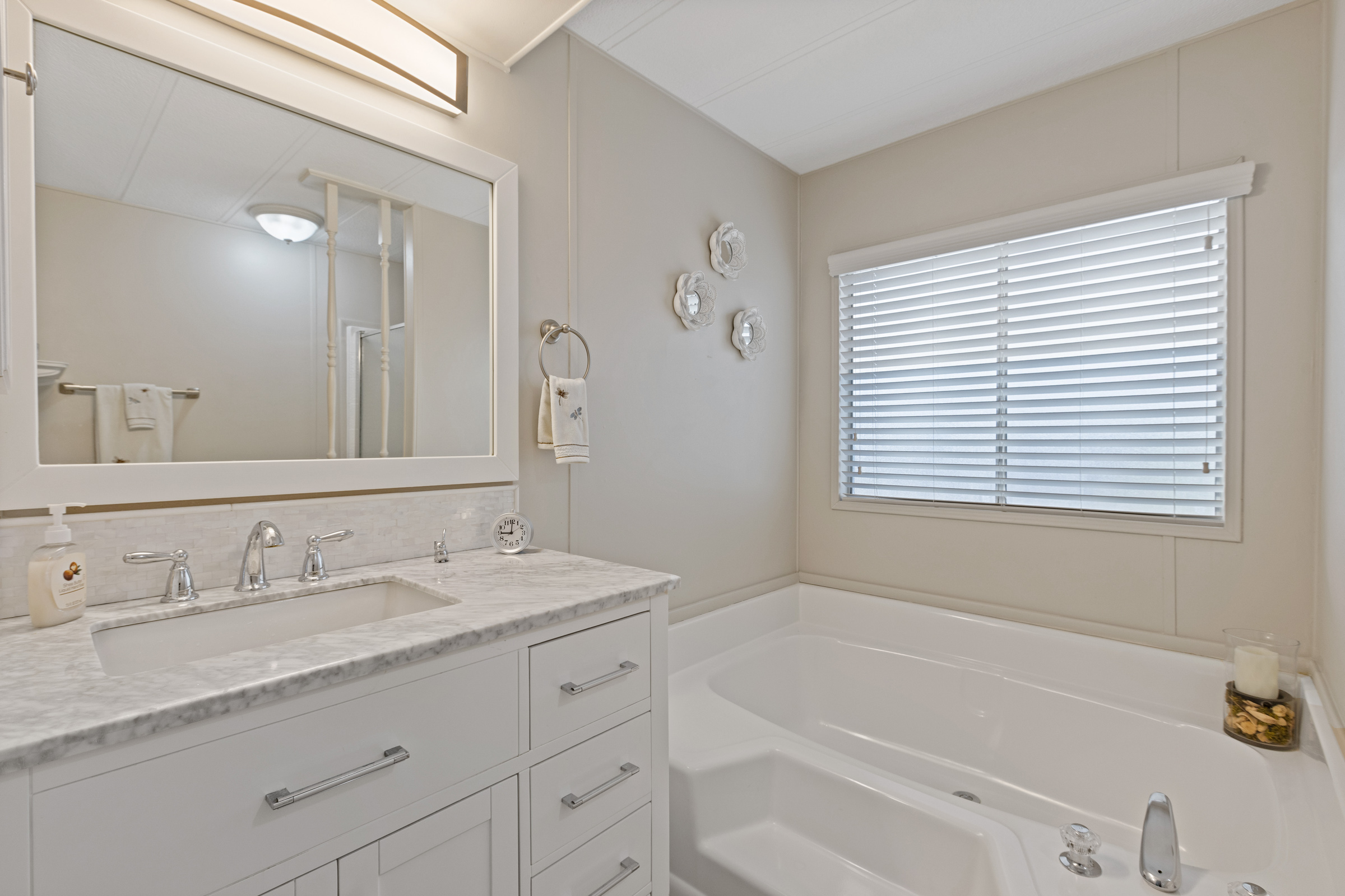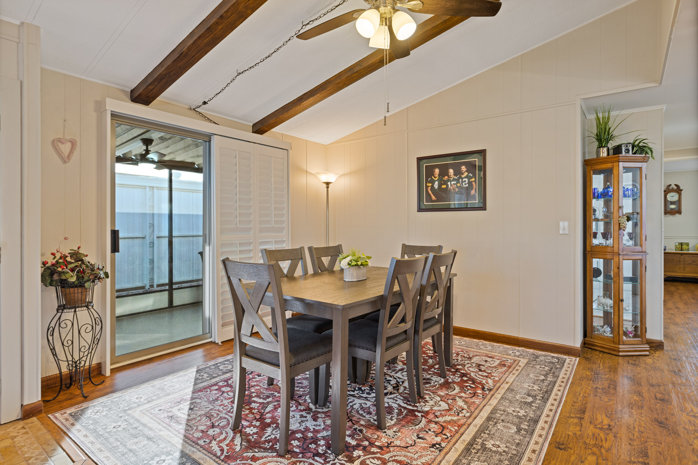 This beautifully updated turnkey 2-bedroom, 2-bathroom home offers modern living with style and comfort. The open concept design features a stunning renovated kitchen with a sleek backsplash that extends from the countertop to the ceiling and updated soft closing cabinetry. The spacious living room boasts cathedral ceilings and new plantation shutters, creating a welcoming atmosphere. Enjoy easy to maintain flooring throughout with no carpet. Both bedrooms offer ample space, and the master bathroom has been fully renovated, complete with a stylish barn door. The AZ room with epoxy flooring adds versatility and charm to this home. Don’t miss out!